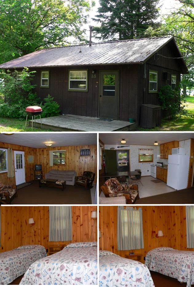 Cabin 18 has 2 bedrooms with 1 full size bed plus 3 twins and 2 sleeper couches. The cottage is very close to the docks and has a great view of the gorgeous sunrises over Little Cutfoot Sioux. |