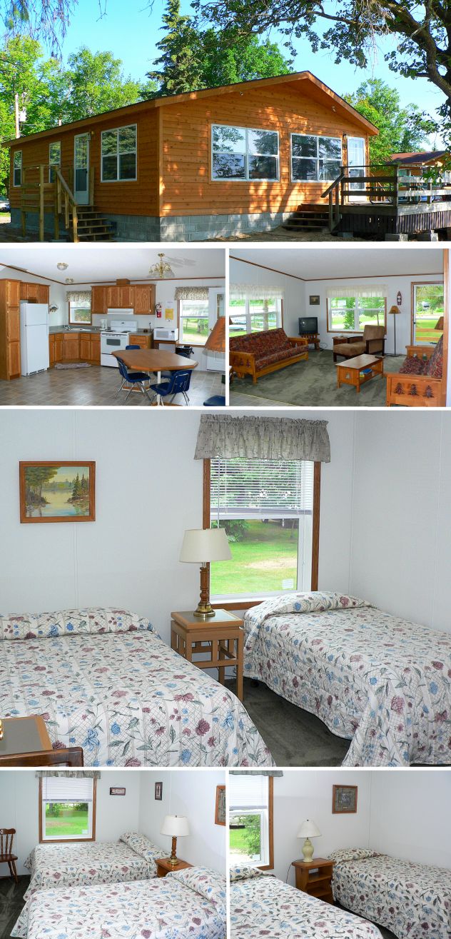 Cabin 19 has 2 bedrooms with a sleeping den for a total of 4 twins and 2 full size beds plus 2 innerspring futon sleeper couches. The cottage has great lake views of the east bay and is located only 25-30 feet from the lakeshore and docks. |